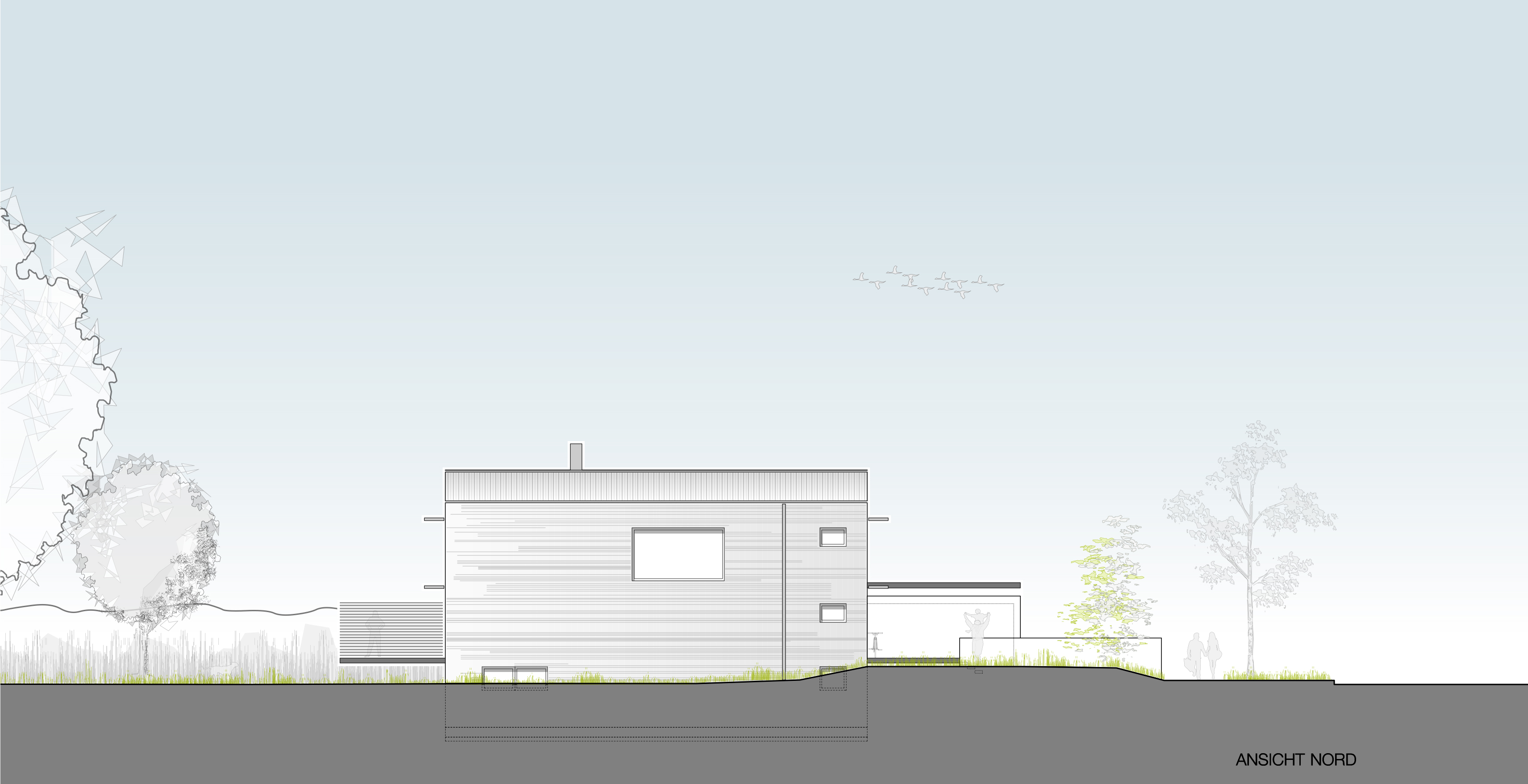 Der stetige Kontakt zu den Bauherren ermöglichte es, alle Wünsche, Lebensgewohnheiten sowie auch Ansprüche an die Architektur des neuen Hauses konzeptionell und baulich zu vereinen. Durch die Vermittlung an einen Generalunternehmer war es möglich, die Bauzeit auf ein Minimum zu reduzieren.