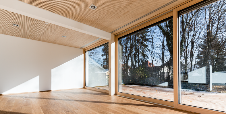 Das freistehende Einfamilienhaus wurde in einer Bauzeit von ca. neun Monaten in Holzbauweise für eine Familie im Münchner Osten erstellt. Es handelt sich um ein Passivhaus 40, das den Anspruch des Bauherren erfüllt, bedarfsgerecht, ökologisch und finanzierbar zu sein.