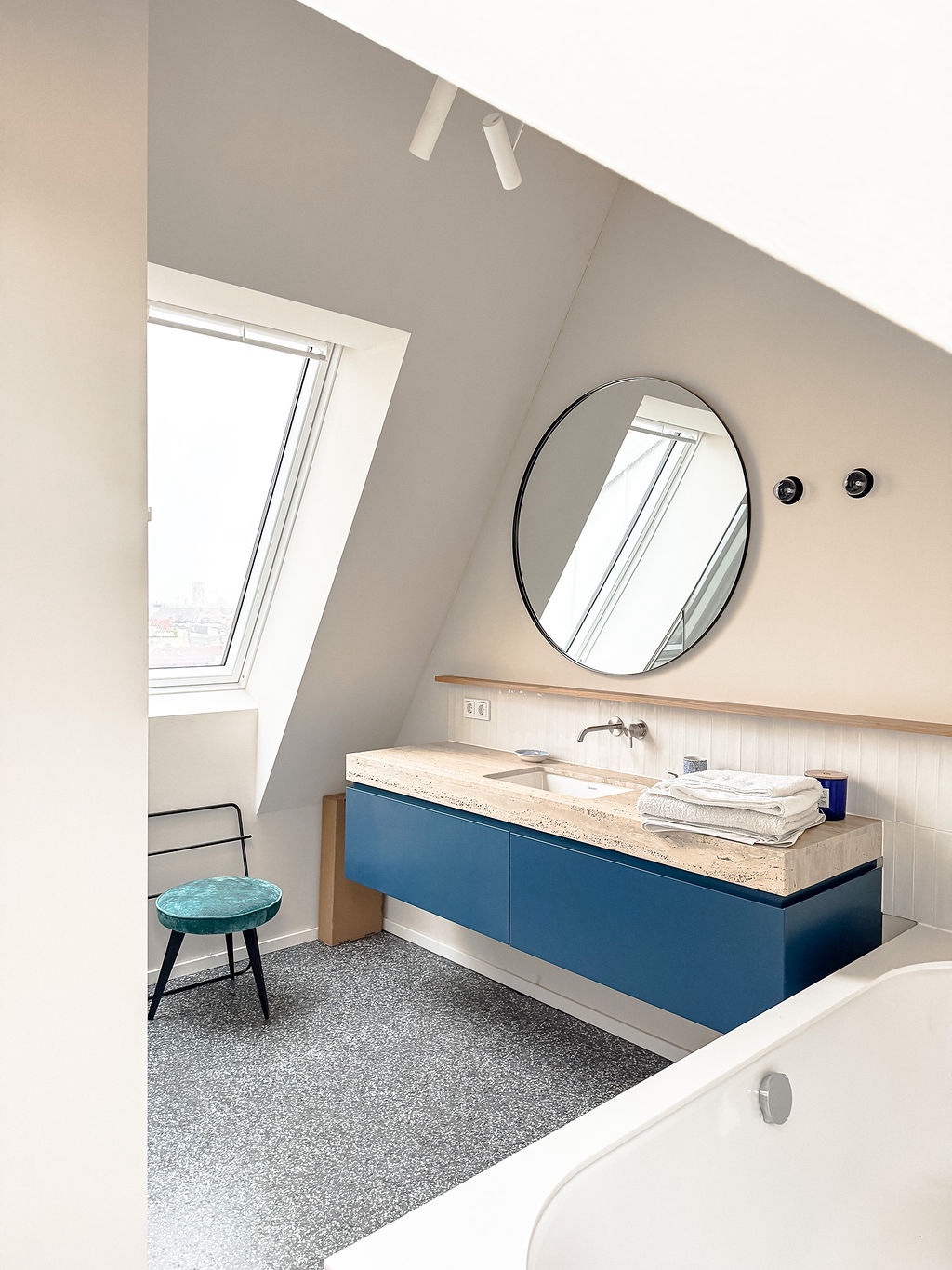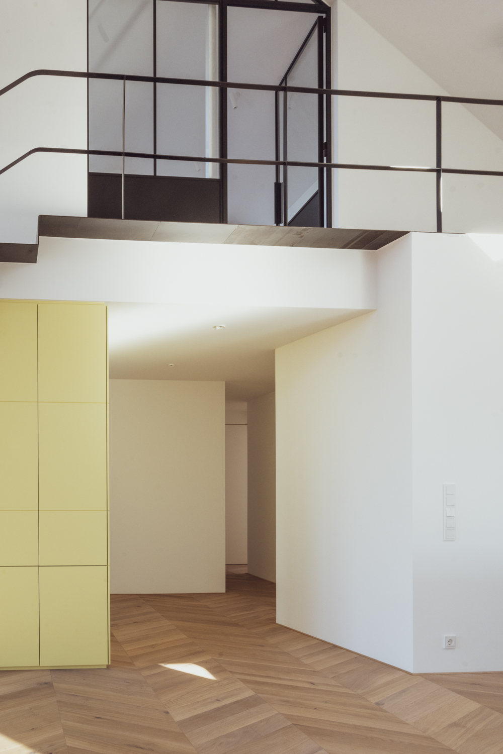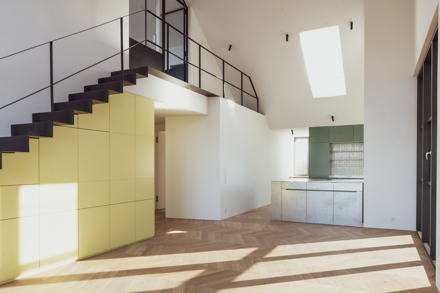 Das Umbau- und Sanierungskonzept des gesamten Hauses ist ein Gemeinschaftsprojekt der Hausgemeinschaft sowie dem Architekten, der auch gleich der prägende Entwurfsgestalter der Dachwohnungen war. Ein solches Vorhaben, mit den Unterschiedlichsten Bedürfnissen und Charakteren, erfordert viel Geduld, Mut, Vertrauen und auch den einen oder anderen Meinungsaustausch.