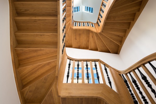 Ein denkmalgeschütztes Wohnhaus in München Schwabing wurde umfangreich saniert und umgebaut. Im Vordergrund der Bemühungen stand die Bewahrung bzw. Revitalisierung der erhaltenswerten Substanz sowie die Schaffung spannender Schnittstellen zu allem "Neuen", wie zum Beispiel der gefalteten Treppe.