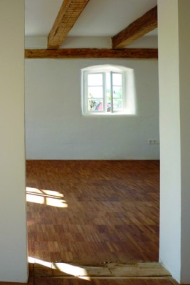 Das denkmalgeschütze Kleinbauernhaus mit Scheune, Stall und einem angegliederten Wohnbereich mit Blick in die unverbaubare Umgebung wurde in Abstimmung mit dem Denkmalamt behutsam saniert (Fassade, Fenster, Dach). Aufgrund der im Laufe der Jahre vorgenommenen Umbauten im Inneren durch die Vorbesitzer (u.a. Türen, Fußböden, Treppe) blieb bei der inneren Gestaltung lediglich die Raumstruktur in den beiden Geschossen erhalten, alle nicht denkmalgeschützten Bauteile wurden entfernt bzw. zurückgebaut.