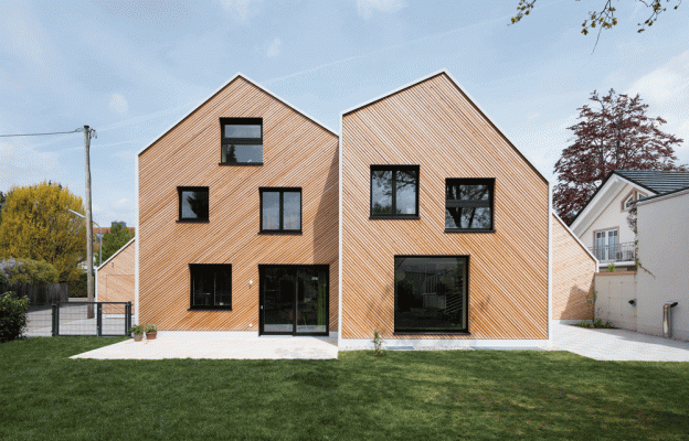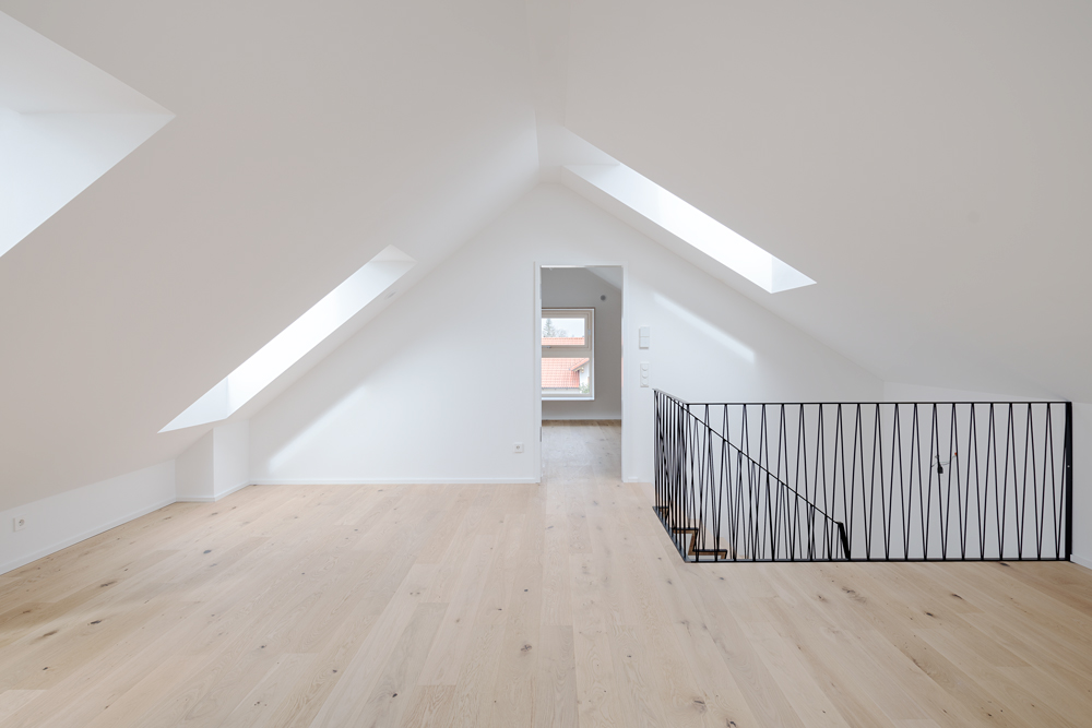 München wächst und wächst. Das spürt man auch in den Vororten, wo eine sinnvolle Nachverdichtung bei gleichzeitigem Erhalt der Qualitäten die große Herausforderung darstellt. Beim Projekt Hausfuchs wurde ein Grundstück in zwei Teile geteilt und das ehemalige Einfamilienhaus durch ein Doppelhaus ersetzt. Frei nach dem Motto ein Grundstück, zwei Häuser, vier Dächer wird die Anknüpfung an den örtlichen Baubestand durch Satteldächer vorgenommen. Durch die Querstellung zur Straße wird jedoch mit einem einfachen Kniff eine klarere Adressbildung und auch eine optisch spannungsreichere Komposition erreicht.