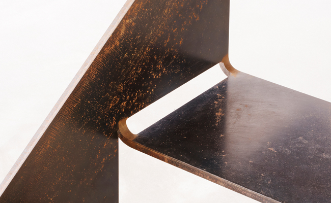 Der Clou an der Cut it!-Schnittguttreppe ist die Art der Fertigung. Unter starkem Druck entfaltet sie sich wie eine „Pop-Up Karte" aus einem Stück in ein dreidimensionales Bauwerk. Dabei wird die Form der Treppe zunächst wie eine Schablone aus einem großen Stück Blech mit modernen Großformat-Laserschneideanlagen geschnitten. Das so genannte Lasercutting sticht vor allem durch seine exakten und sauberen Ergebnisse heraus. Und das ist ein Muss, denn die Größe und exakte Schnittgebung der ovalen Ausschnitte an beiden Wangen sind die Basis für die Statik der Treppe. Dann erst entfaltet sie sich mittels der Hebelkraft traditioneller Handhebel in ein dreidimensionales Schnittgut – die Schnittguttreppe.