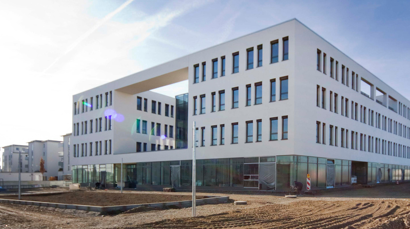 Im neu entstehenden Stadtteil Freiham im Münchner Westen situiert, stellt das Gesundheitszentrum einen Teil des neuen Stadtteilzentrums dar. Die großzügig verglasten Einzelhandelsflächen im Erdgeschoss tragen der prominenten Lage am zentralen Platz des Stadtteils Rechnung und führen - wie auch die beiden Hauptzugänge - Kunden und Patienten ins Atrium, dem Herzstück des Gebäudes. Von hier aus werden über verglaste Aufzüge und eine Freitreppe die Praxisflächen in den drei Obergeschossen erschlossen.