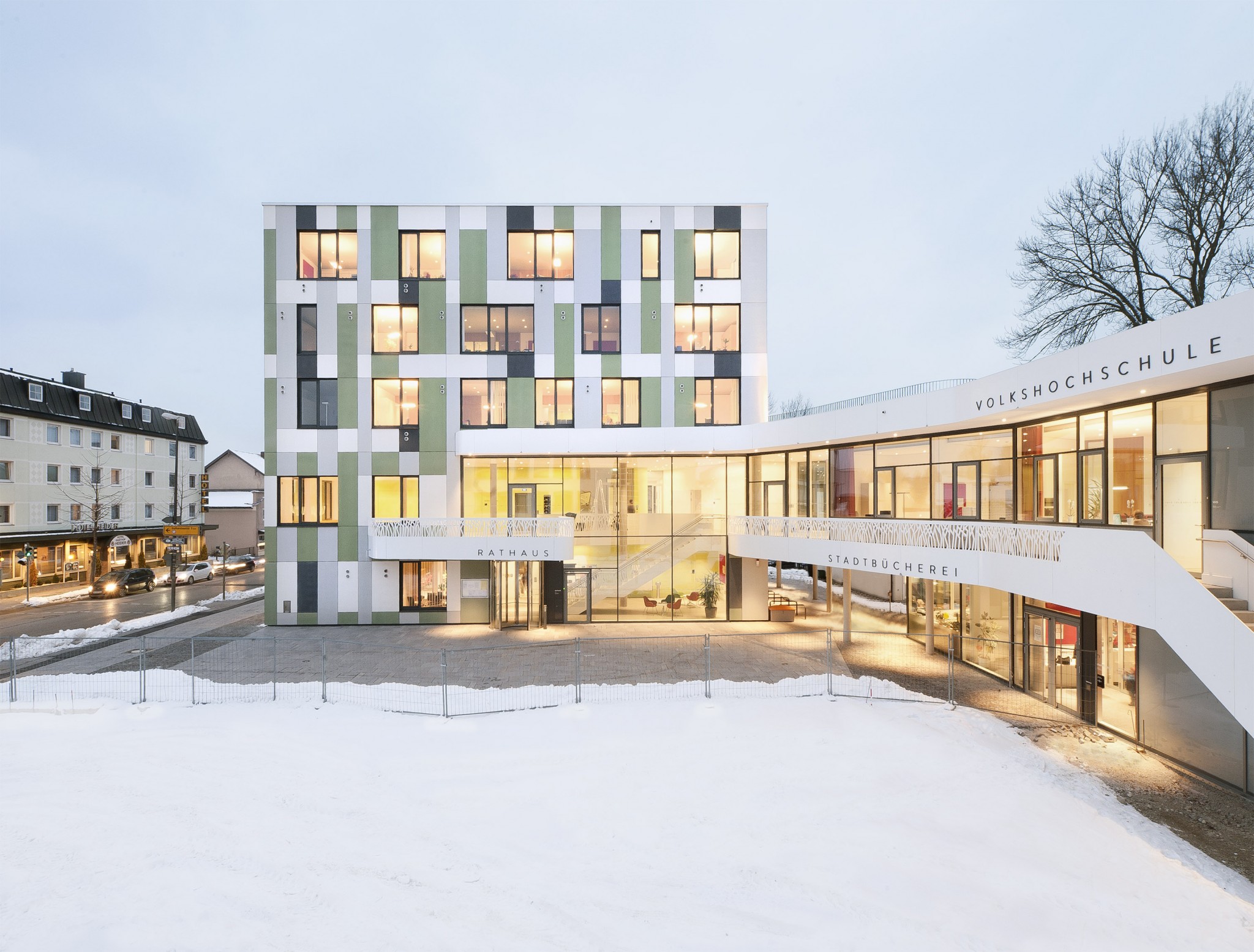 In unmittelbarer Nähe zum historischen Stadtkern Kolbermoors und direkt am Stadtpark gelegen, befindet sich das neue Rathaus - im Zentrum des städtischen Lebens der bayerischen Kleinstadt. Hier gliedert sich das Rathaus sowohl mit seiner äußeren Erscheinung als auch durch seine Nutzung ein. Es ist ein lebendiges Haus, dessen zweigeschossiger geschwungener Baukörper mit den öffentlichen Nutzungen den Übergang zum ebenfalls neu gestalteten Park bildet. Der fünfgeschossige Verwaltungskörper ist ein markanter Abschluss des östlichen Kernstadtgebietes und schafft ein angemessenes bauliches Pendant zur Stadtkirche im Westen der Innenstadt.