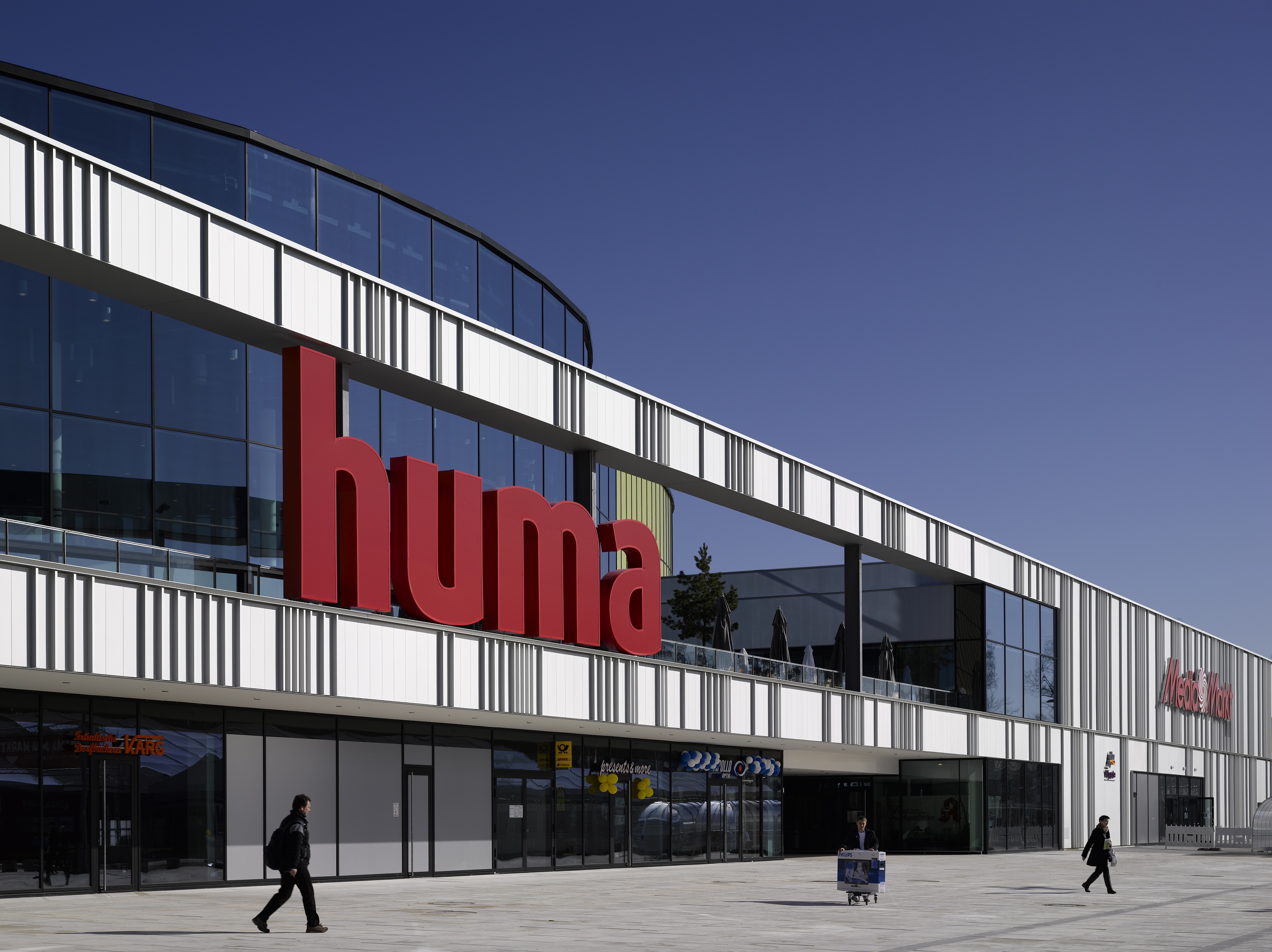 Innerhalb des Umrisses des alten Fachmarktcenters wurden die zweigeschossigen Gebäudeteile bis auf die Stahlbetonkonstruktion entkernt. Als wesentliche Konzeptidee verbindet die neue zentrale „Markthalle" alle Mieteinheiten und verschafft den Kunden Orientierung im Center. Das Thema Markthalle wird in Form von freistehenden Kiosken und variablen Marktflächen auch im wörtlichen Sinn umgesetzt.
