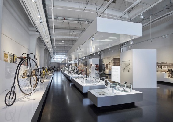 Der Rundgang beginnt mit dem Bereich Unternehmensgeschichte, der sowohl aus freistehenden, nicht begehbaren Präsentationsräumen, als auch Großgrafiken besteht. Integrierte Vitrinen, Monitore und Audiostationen ermöglichen dem Besucher eine Vertiefung in das jeweilige Thema. Auf einem "Band" werden die technischen Highlights der Firma ZF Sachs in produktbezogener Gruppierung präsentiert. Die Exponate werden auf weiß lackierten Podesten präsentiert, Informationen geben die dazugehörigen Grafikflächen und Monitorstationen. Die Farbigkeit verbindet die Podeste optisch miteinander und betont die lange Achse des "Bandes". Verstärkt wird dieser Effekt durch ein darüber "schwebendes", gleichlanges Deckenelement mit integrierter Beleuchtung. Die glänzend beschichtete Unterseite des Deckenelements spiegelt die Exponate. Nur hier werden die technischen Exponate mit einer kühlen Lichtfarbe ausgeleuchtet.