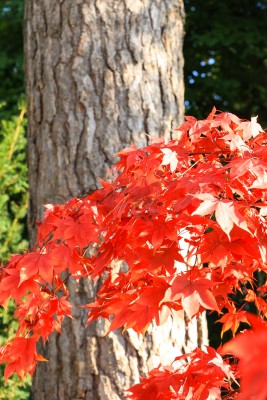 Eine zentrale Rasenfläche war für die sportbegeisterte Familie wichtig. Die Möglichkeit zum Footballspielen sollte gegeben sein. Eine Reihe Chinesischer Wildbirnen wurde daher entlang der Nordgrenze so positioniert, dass die Stämme als Torstangen dienen können. Die Herbstfärbung dieser Bäume ist leuchtend orange und fügt sich gut ein.