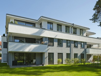 Wohnungsbauten Wohnen am Wald Grünwald | Auf einem Grundstück mit angrenzendem Forst gruppieren sich drei Villen um einen prächtigen Laubbaum. Das parkähnliche Grundstück mit seinem schützenswerten Baumbestand und dem angrenzenden Forst bildet den Rahmen für die Leitidee... mehr ... von lynx architecture