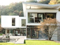 Einfamilienhäuser Haus G Starnberg | Ein zur Straße geschlossener L-förmiger Baukörper erfüllt die Bedingungen eines restriktiven Bebauungsplanes und setzt eine offene Wohnvorstellung der Bauherrn im Inneren um. Das Entwurfskonzept aus räumlich bestimmten Wandscheiben und Ost-West... mehr ... von Stephan Maria Lang