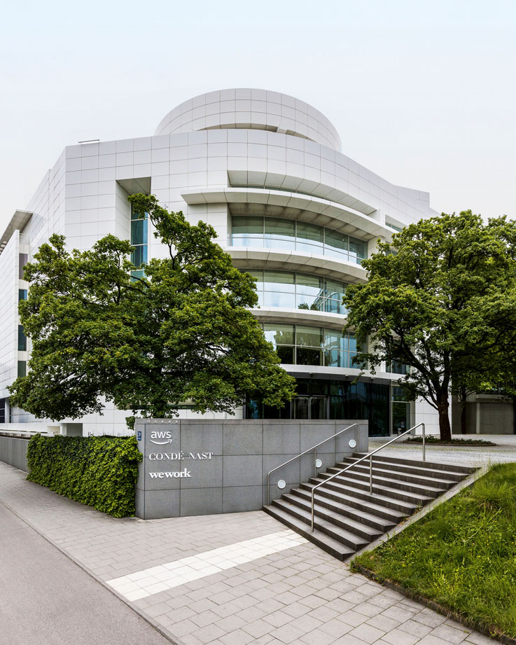 Der Verlag hat das „OSKAR“, so der Name des prägnanten Richard-Meier-Baus nahe dem Odeonsplatz, als Ankermieter zuerst bezogen. Der Co-Working-Spezialist WeWork und Amazon Web Services werden folgen. Auf über 5.600 qm erstreckt sich die neue Deutschlandzentrale des US-amerikanischen Medienunternehmens, fließend verbunden über zwei Stockwerke im komplett renovierten ehemaligen Siemens-Forum.