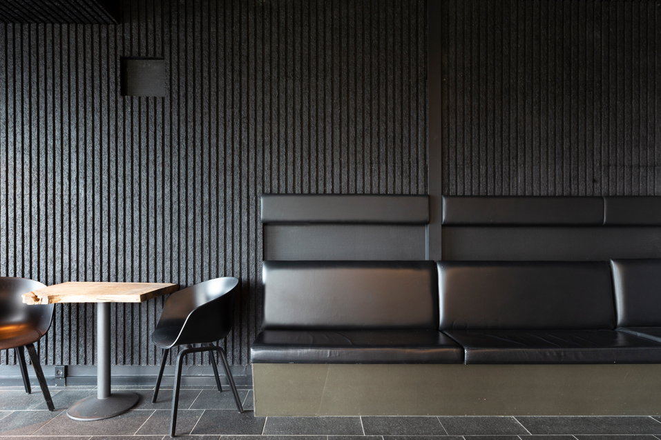 Was hinter dem von Einrichter Søren Vester umgesetzten Konzept steht, verrät der an der Danish Design School ausgebildete Experte für Innnenraum-Design. Mit überzeugenden Ideen gestaltet er Räume von Restaurants bis hin zu Häusern und Wohnungen. So auch im Restaurant Strandtangen in Skive, wo seine Wahl auf die neue Troldtekt Designlösung Troldtekt® Line fiel: „Die schwarzen Akustikplatten mit eingefrästen Längsrillen sind Dreh- und Angelpunkt. Sie erzeugen ein hübsches Schattenspiel und einen räumlichen Eindruck, der es einem erlaubt, sich in das Essen, gute Gespräche und die schöne Aussicht zu vertiefen."
