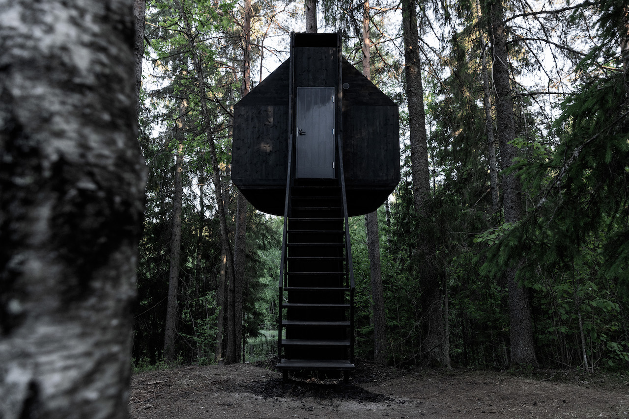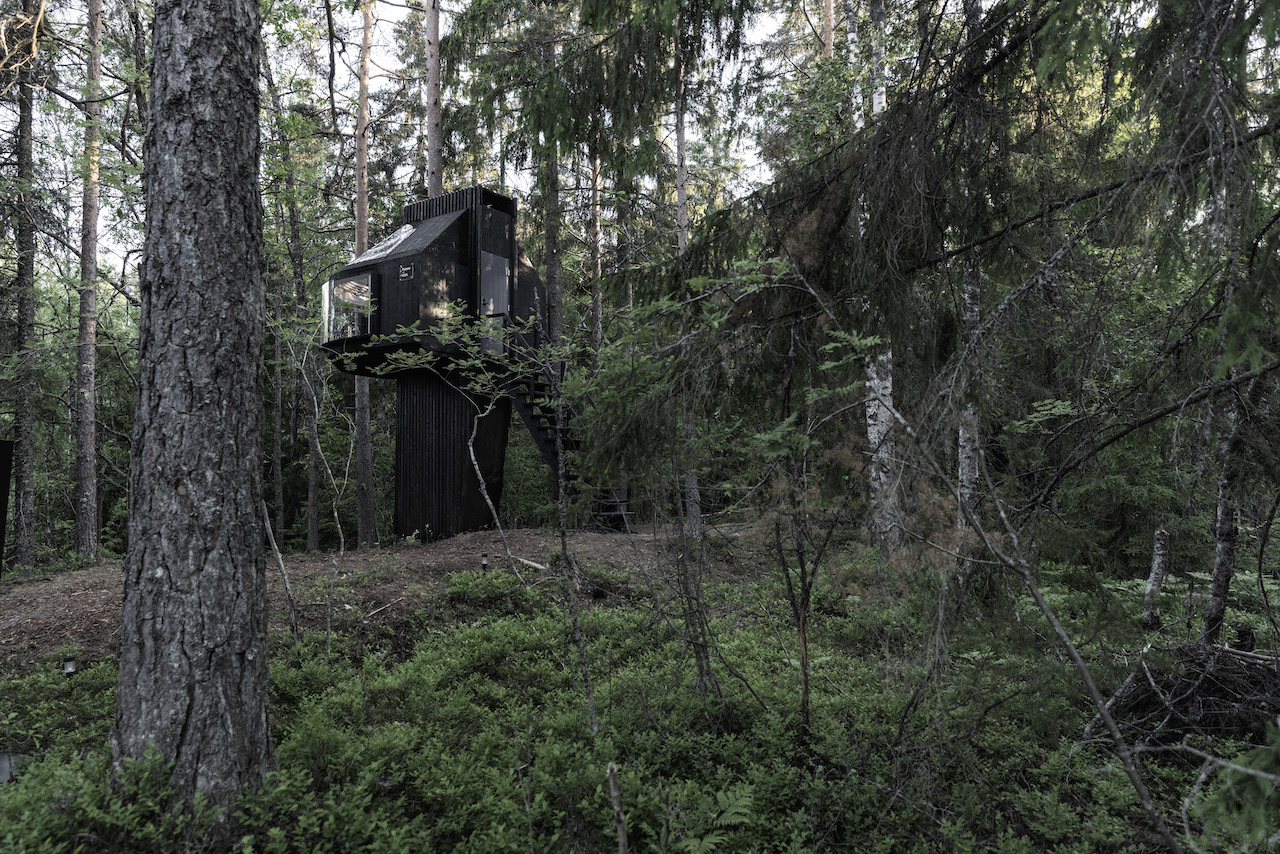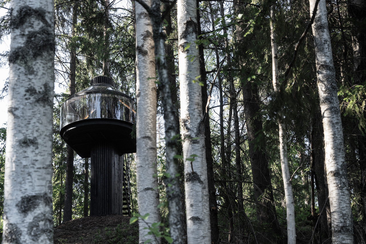 Das vom finnischen Designer Kristian Talvitie entworfene Baumhaus definiert das Konzept des „Reisens“ neu. Direkt unter der Baumkrone montiert, schwebt die Konstruktion im Wald und bietet durch ihre großzügige Panoramaverglasung einen ungehinderten Blick in das Blätterdach.