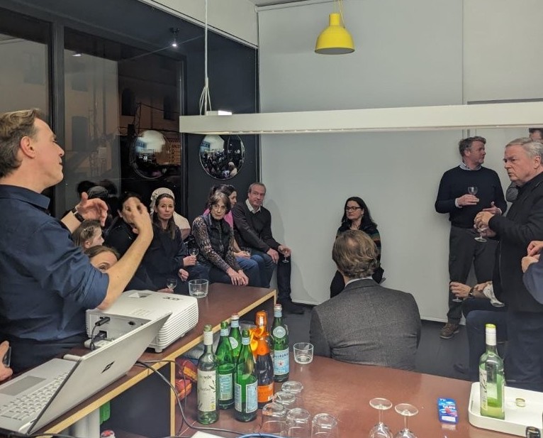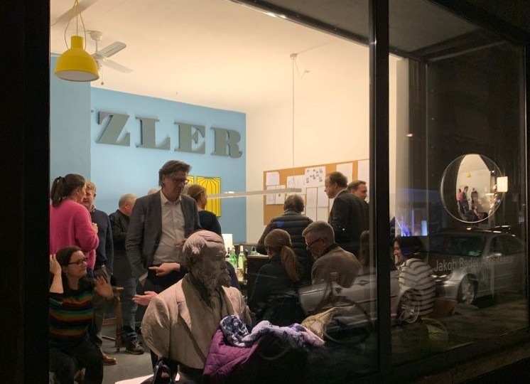 Mehr als 20 Jahre nach dem legendären Kulturkiosk Kanzler lädt der Münchner Architekt Jakob Bader zu einer Veranstaltungsreihe in sein Büro ein. Er nennt die Abendveranstaltungen „Akademie", nicht nur wegen der räumlichen Nähe zur Akademie der Künste, dem Sichtbezug, nicht nur, weil die Marmorbüste von Neureuther in seinem Schaufenster steht, nicht nur wegen Corbusier, der sich vor 100 Jahren über die reaktionären Akademien echauffierte, sondern mehr, weil seine Veranstaltungen außer Unterhaltung auch einen bildenden Charakter haben und weil sie ein Ort der Begegnungen von Architekten und Nicht-Architekten sein können.