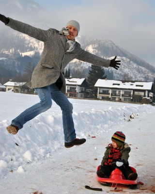 Wir haben uns natürlich lange überlegt, welchen Text und welches Bild am besten zu dem Abend bzw. zu unserer Arbeit passt. Letztendlich haben wir uns für den Freudensprung eines Bauherren und inzwischen lieben Freundes entschieden: Eine junge Familie, für die wir ein sehr unkonventionelles Projekt bauen durften.